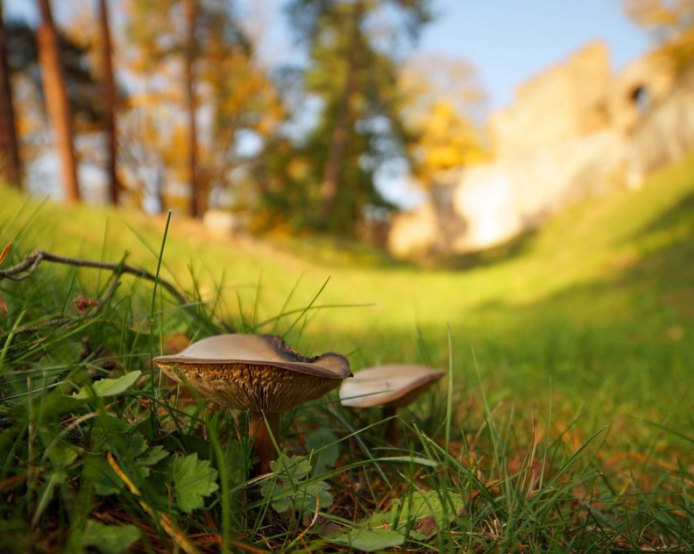 Sun Forest Castle Mushrooms Autumn Day Poland