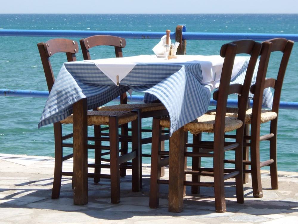 Table Wood Seat Chair Sea Blue Summer Vacations