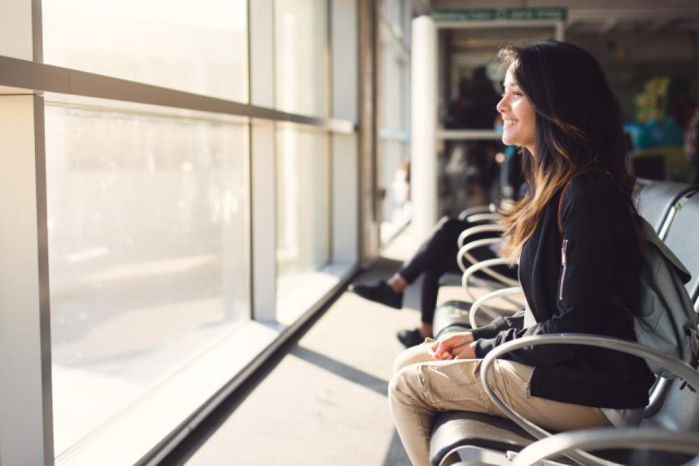 Teenage girl waiting at airport lounge