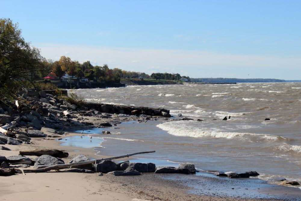 Water washing on the shores of Lake Eerie in Buffalo, New York free photo