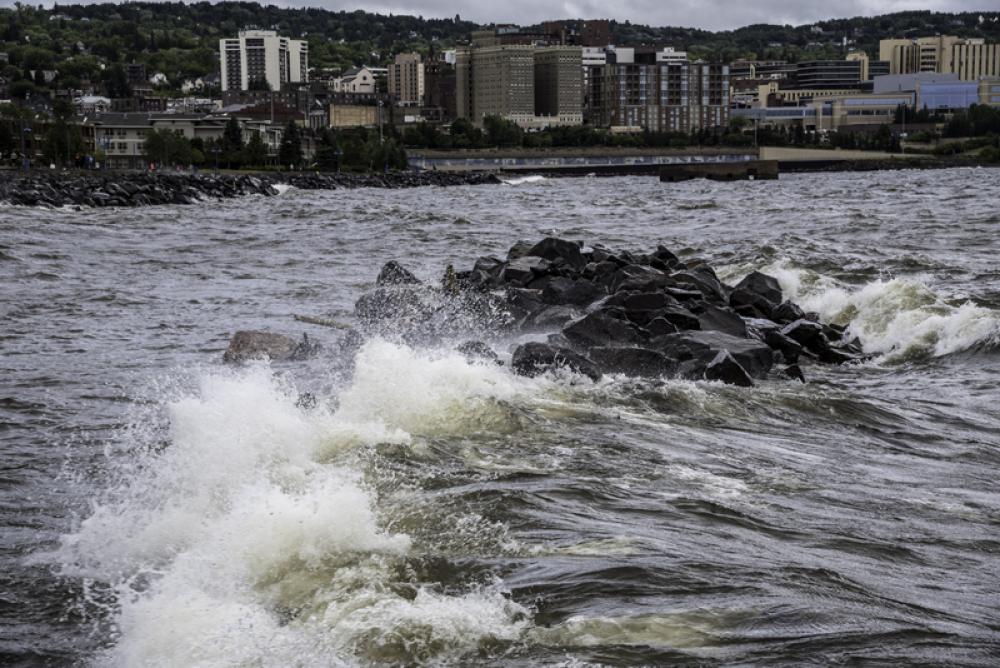 Waves crashing over Rocks in Lake Superior in Duluth, Minnesota free photo