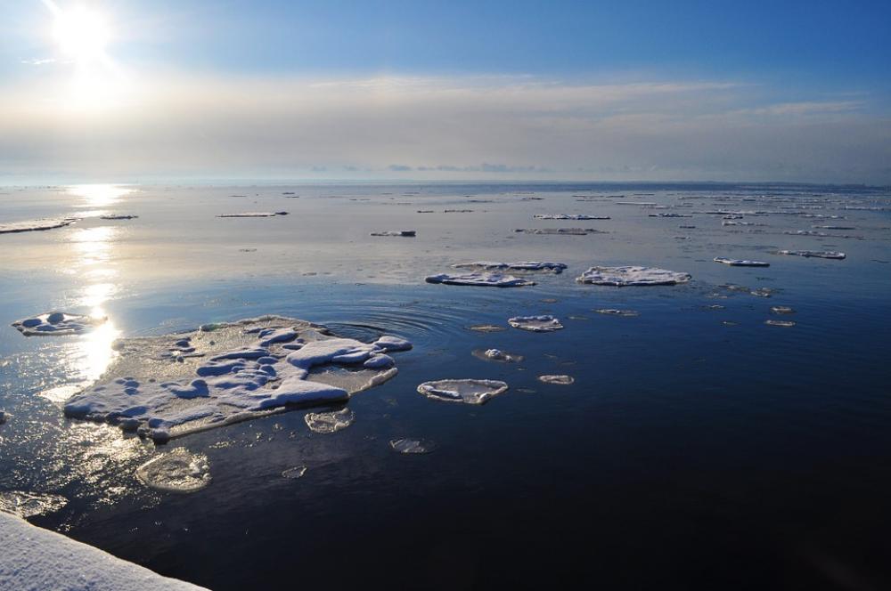 Winter Ice Landscape Floating Chunks Ocean Sun