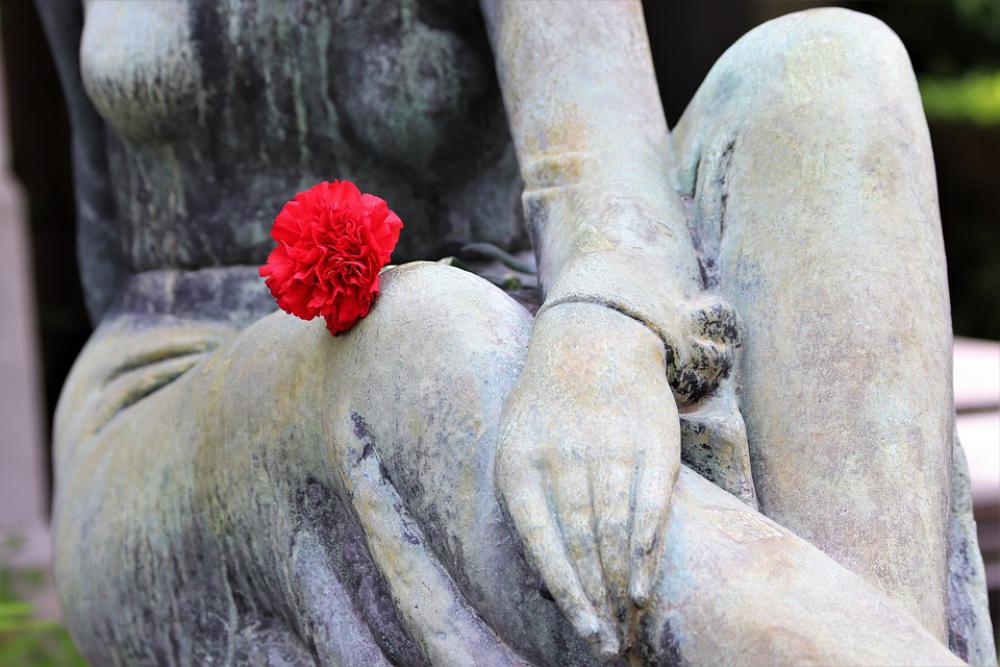 Woman Sculpture Red Carnation Cemetery Mirogoj