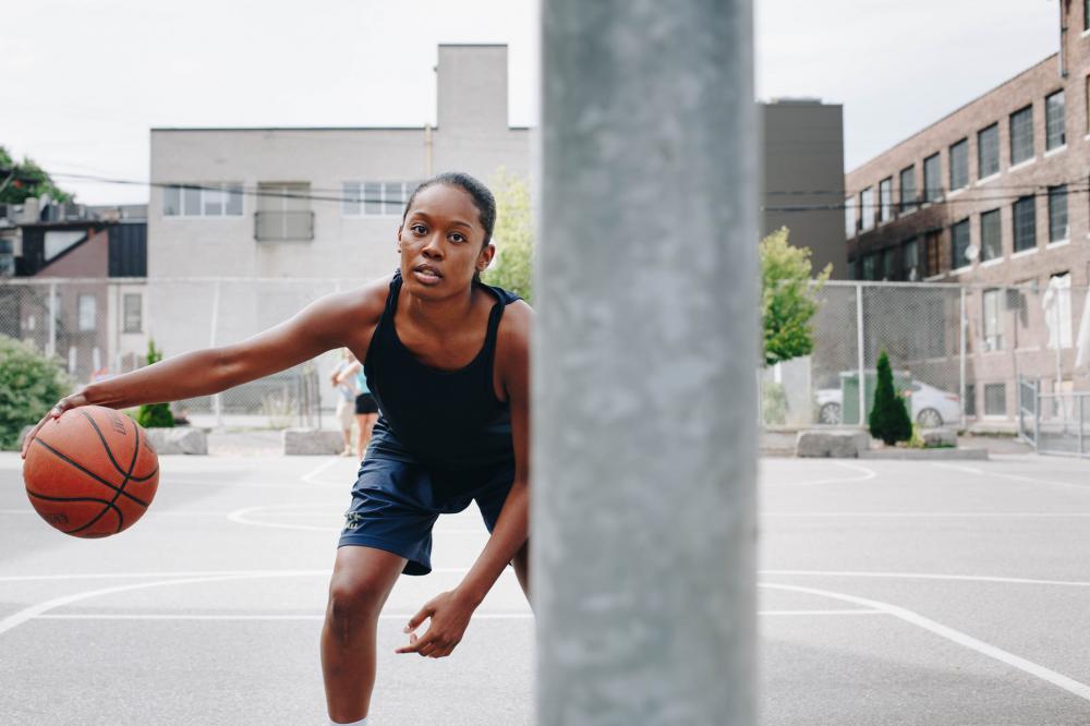 Young Woman Practices Her Dribbling Skills Photo